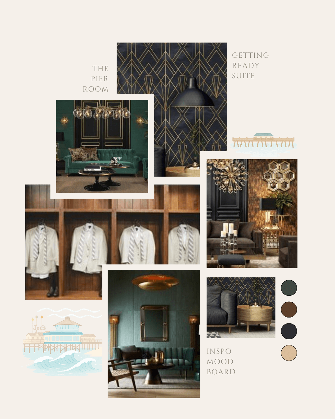 The Pier Room is the perfect place to prep and relax for the big day, with serene shades of blue and emerald that mimic the water below.
